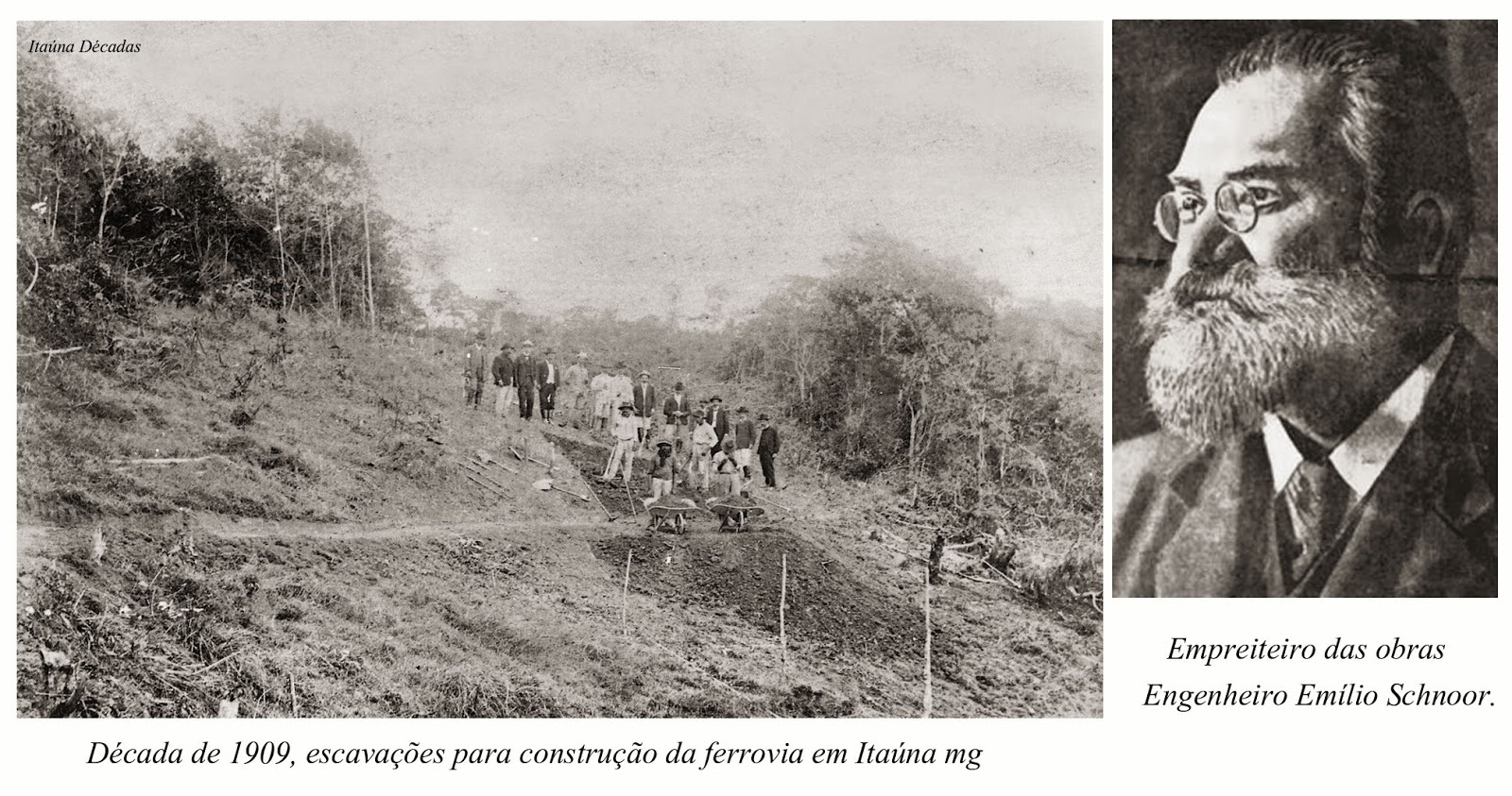 ESCAVAÇÕES PARA A CONSTRUÇÃO DA FERROVIA, AO LADO ENGENHEIRO EMÍLIO SCHNOOR EMPRRAMAL DA ESTRADA DE FERRO BELO HORIZONTE - DIVINÓPOLIS.