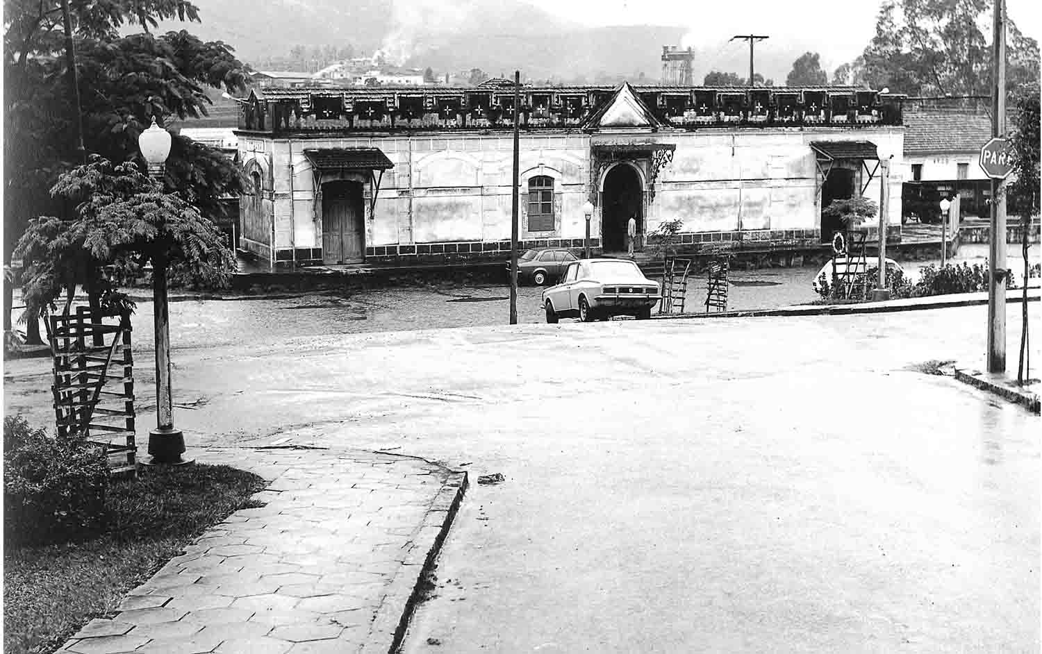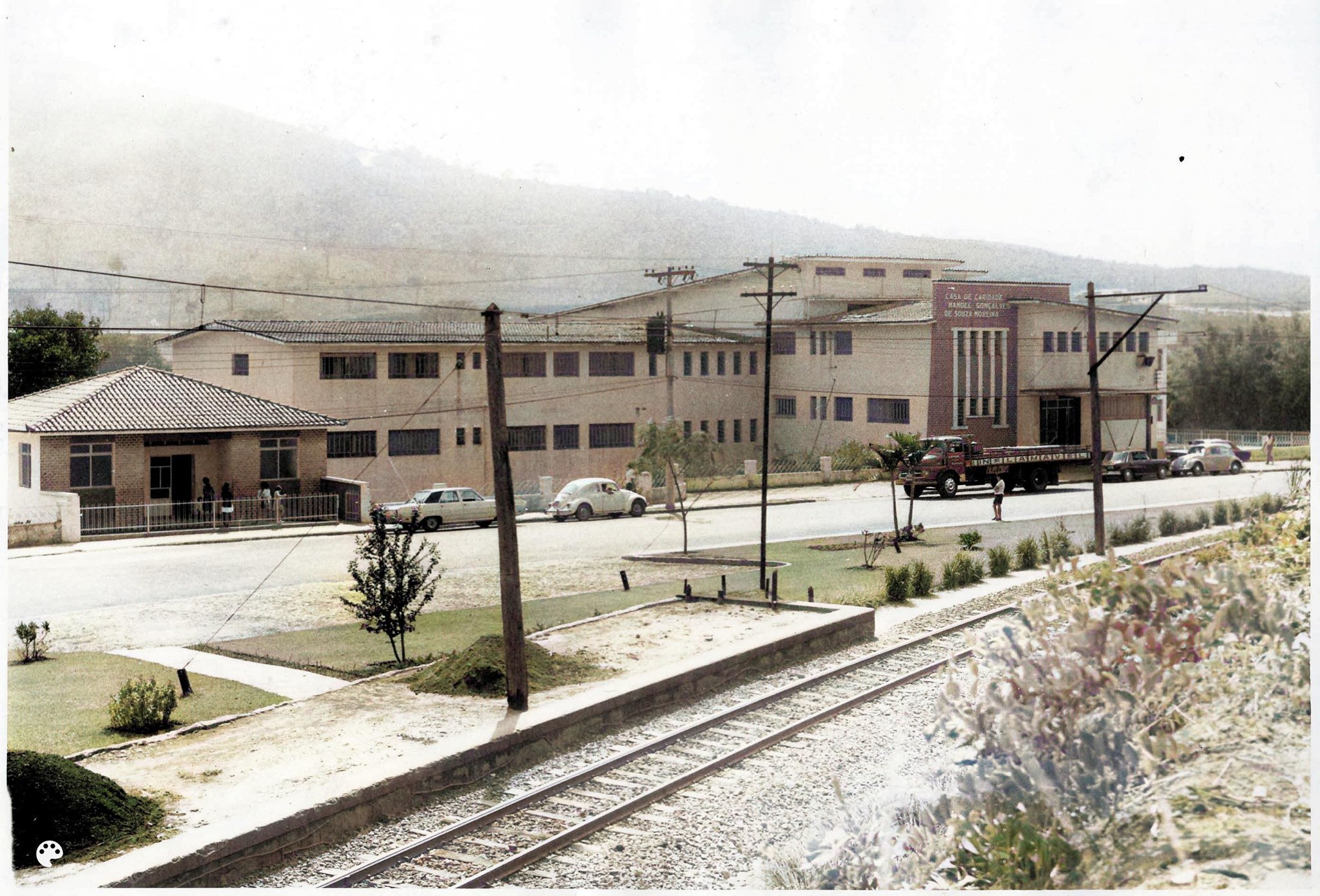 HOSPITAL MANOEL GONÇALVES COM PEQUENA ESTAÇÃO AO LADO DO TRILHO.