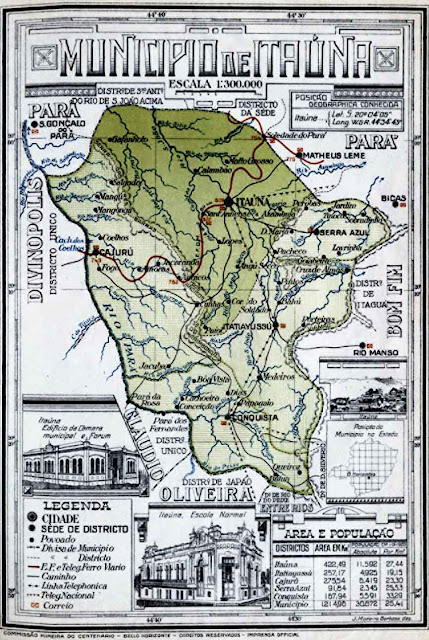 Divisão Político-administrativa de Itaúna em 1927. Album Chorographico , 1927. Acervo Blog Itaúna Décadas.
