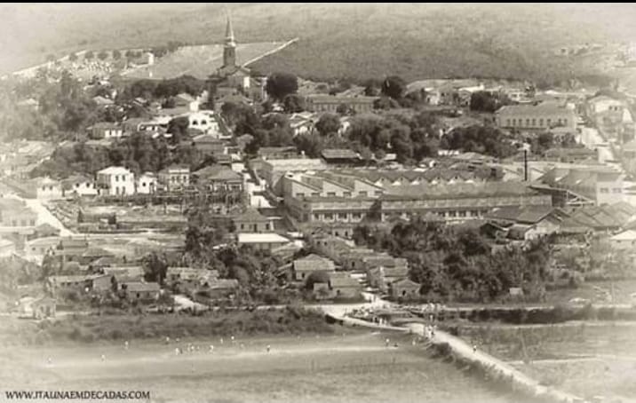 VISTA DE ITAÚNA, FÁBRICA ITAUNENSE À DIREITA. Autoria desconhecida, século 20. Arquivo pessoal de Walmir Galvão Santos
