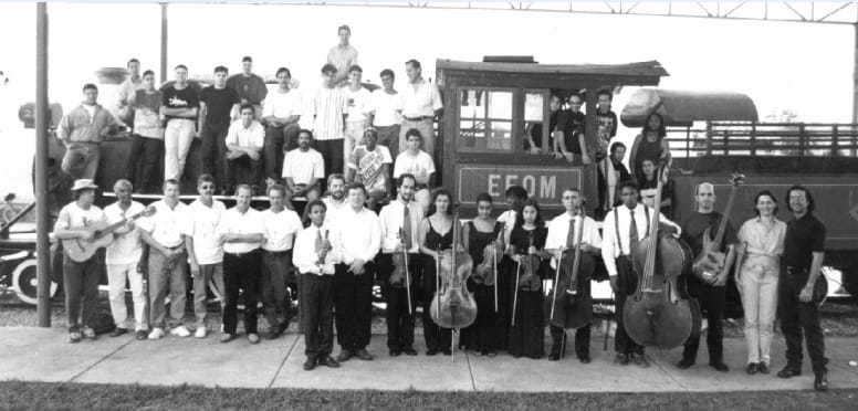 Músicos da cidade que participaram da 1ª Coletânea da Música Itaunense, produzida por Pepe Chaves e gravada no Drama Estúdio. Autoria desconhecida, 1998. Arquivo pessoal de Pepe Chaves