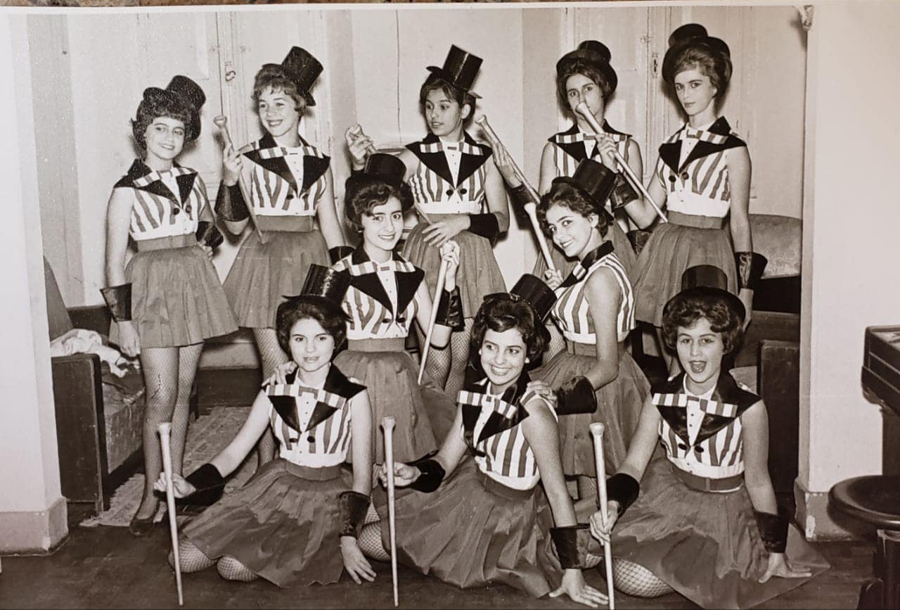 BLOCO DE CARNAVAL DAS CORISTAS. Na foto vemos Lígia Monteiro, Vanda Tavares, Maria José Drumond, Myriam Santiago, Vânia Campos, Lúcia Campos, Déia Corradi, Ivone Tavares, Solange Santos, Tânia Dornas. Autoria desconhecida, década de 60. Arquivo pessoal de Maria Luiz Campos